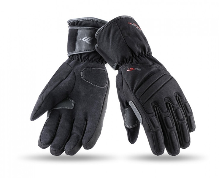 SD-C7: Hosszított szárú városi motorozáshoz készült , poliamid, szintetikus bőr és szarvasmarha bőr keverékéből készült férfi kesztyű. 100%-ig vízálló WinterTex membrán bevonattal, Polartherm béléssel Thinsulate bevonattal, mely lehetővé teszi az alacsony hőmérsékleten való motorozást. Megerősített tenyér résszel, gumírozott csuklóval és tépőzárral állítható. Speciális varró- és fröccsöntő rendszerrel készítik a kesztyűt, ami így tökéletesen alkalmazkodik és illeszkedik a kezed vonalához a maximális ergonómia elérése érdekében. S-től 3XL méretig, fekete színben rendelhető. Rendelkezik CE minősítéssel és motoros ruházati homologizációval. Őszi - téli viseletre egyaránt használható.