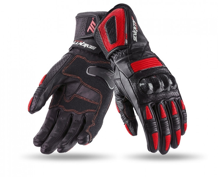 SD-R20: Hosszú szárú sportos motorozáshoz készült , valódi analin szarvasmarha bőrből készült női versenykesztyű. 100%-ban lélegző nagy légáteresztő képességgel. Megerősített kevlár bütyök védelemmel a nagyobb kopásállóság érdekében. Dupla bőrréteg a tenyéren, és a tenyér külső részén, (pro-curve) külső varrásos ujjak a lehető legkényelmesebb motorozásért, gyűrűsujjhoz rögzített kisujj. A csukló részen dupla külső és belső extra szakadás-biztos tépőzárral állítható. Fényvisszaverő panelekkel van díszítve a jobb láthatóság miatt. Speciális varró- és fröccsöntő rendszerrel készítik a kesztyűt, ami így tökéletesen alkalmazkodik és illeszkedik a kezed vonalához a maximális ergonómia elérése érdekében. XS-től XL méretig, fekete/kék, fekete/piros, fekete/szürke és fekete/neonsárga színben rendelhető. Rendelkezik CE minősítéssel és motoros ruházati homologizációval. Tavaszi - nyári viseletre egyaránt használható.