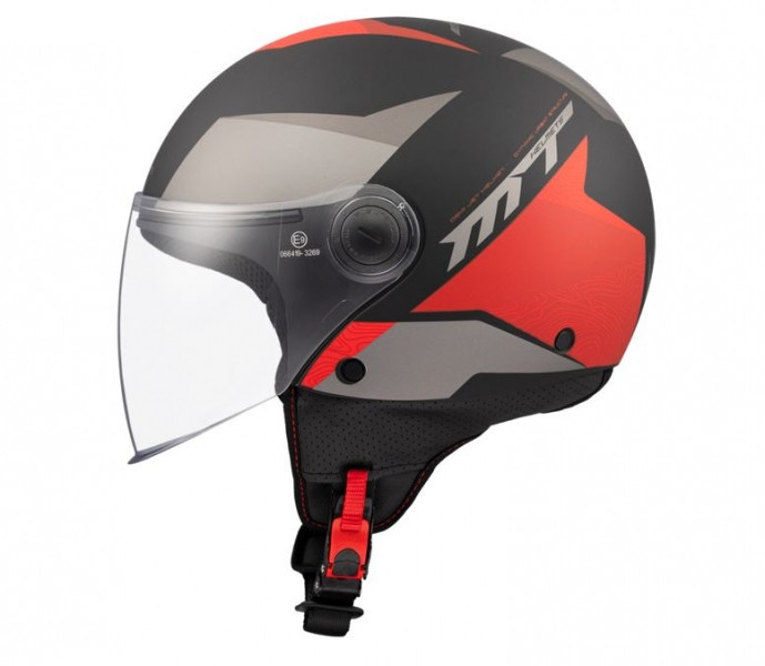 MT Street - robogós bukósisak, aerodinamikus H*I*R*P rendszerű, (magas ütésállóságnak ellenálló polimer), anyagú öntött thermoplasztikus héjszerkezet, különböző sűrűségű ütéselnyelő EPS réteggel, egy méretű héjszerkezettel XS-XL 1.000gr+50gr súllyal. Az arcpárnák Anti-allergének és Anti-bakteriálisak, kivehetőek és moshatóak. A hatékony szellőzés elengedhetetlen feltétele a csúcstechnológiájú, légáteresztő szövet és a csúcsminőségű sisak belsejében található tűzálló szövetbélés, gyorskioldó mikro-metrikus csattal, karcmentes plexi optikai polikarbonátból, mely magas szintű fényáteresztést tesz lehetővé. Nemzetközi homológ engedélyek DOT CERTIFIED (USA), az ECE / UN 22.05.P (EU) szabvány.