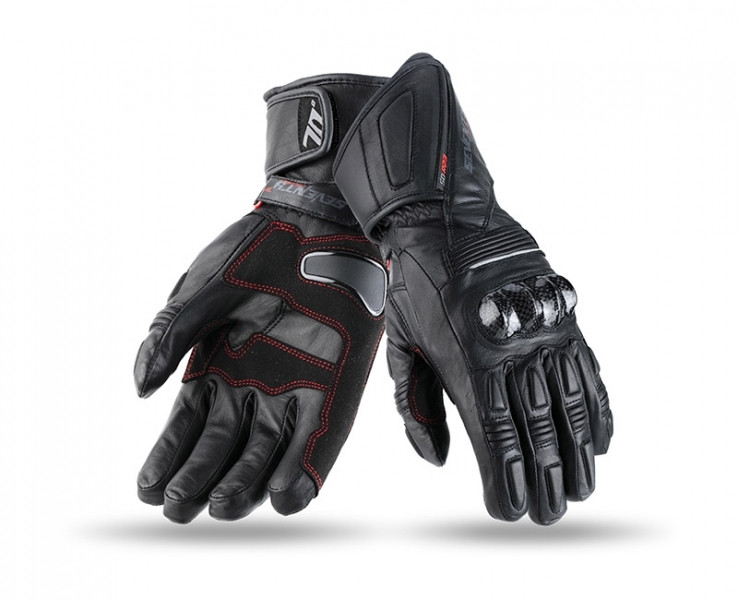 SD-R23: Hosszított szárú sportos motorozáshoz készült , valódi analin szarvasmarha bőr és nobuk bőr keverékéből készült női kesztyű. 100%-ig vízálló WinterTex membrán bevonattal, Polartherm béléssel, mely lehetővé teszi az alacsony hőmérsékleten való motorozást. Megerősített karbonos bütyökvédelemmel és megerősített plusz bőrréteggel a tenyér részen, gumírozott passzé csuklórésszel és állítható tépőzárral a csuklónál. Speciális varró- és fröccsöntő rendszerrel készítik a kesztyűt, ami így tökéletesen alkalmazkodik és illeszkedik a kezed vonalához a maximális ergonómia elérése érdekében. XS-XL méretig, fekete színben rendelhető. Rendelkezik CE minősítéssel és motoros ruházati homologizációval. Őszi - téli viseletre egyaránt használható.